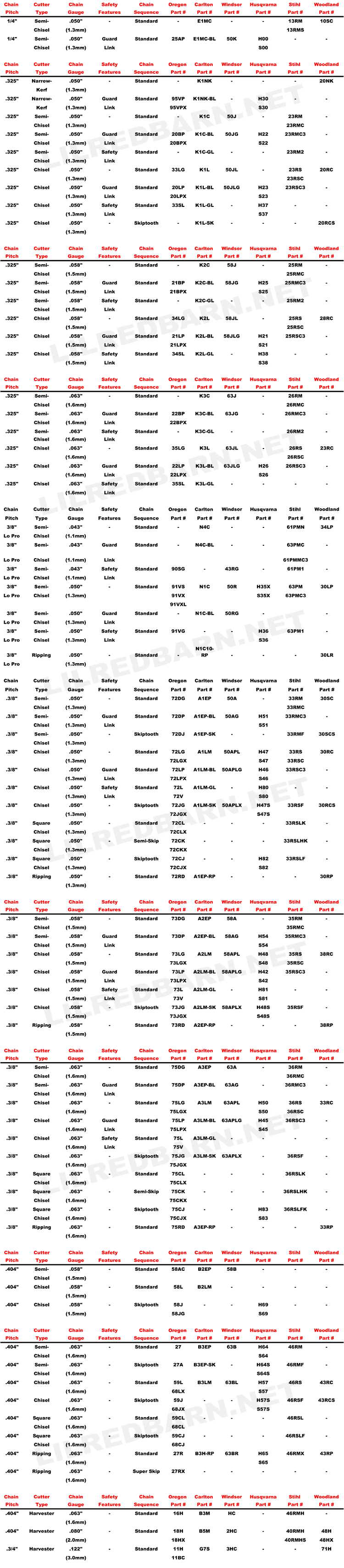 Oregon Chain/Conversion/ Chart | Firewood Hoarders Club