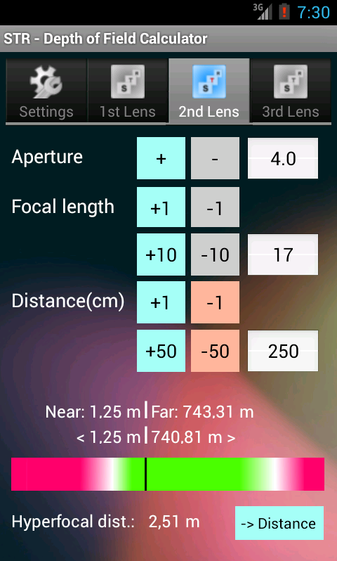 Depth Of Field Chart. This depth of field chart is the fastest way to have your DoF calculations done. Also, it comes in very handy to visualize how depth of field changes with aperture and subject distance for the selected camera and focal length.